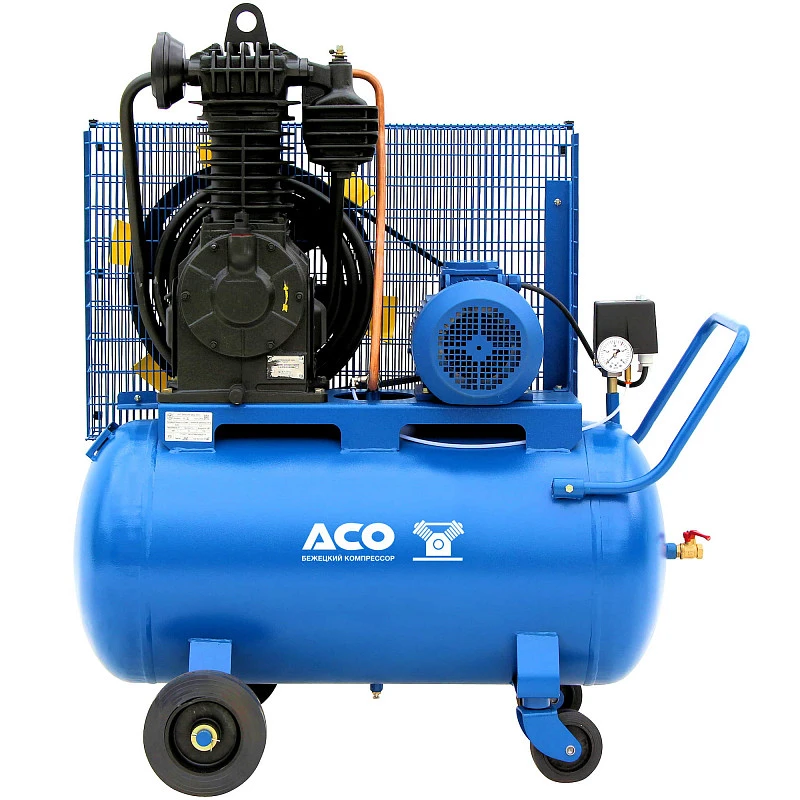 Поршневой компрессор с ременным приводом К2 используется на предприятиях, где требуются небольшие объемы сжатого воздуха. В конструкции применена массивная и надежная компрессорная головка поршневого типа, которая выходят из собственного литейного производства. Бежецкий завод АСО является единственным предприятием на территории России, который производит поршневые компрессоры по полному циклу.