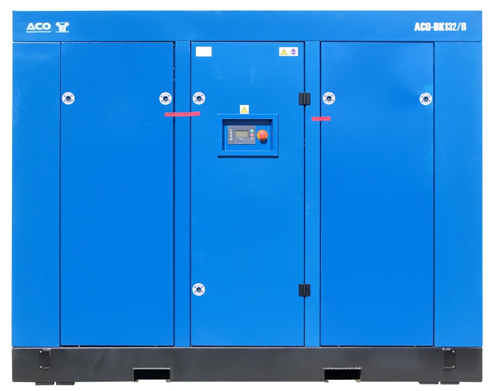 Стационарный винтовой компрессор АСО-ВК132/13М2 Бежецкого завода АСО имеет производительность 15 м3/мин и максимальное давление 13 атм. Винтовой блок YNE178RB, привод 132 кВт. Уровень шума не более 80 дБа. Температура воздуха на всасывании в диапазоне от 5 до 40 °С. Габариты 255 х 165 х 200 см., масса 2500 кг.