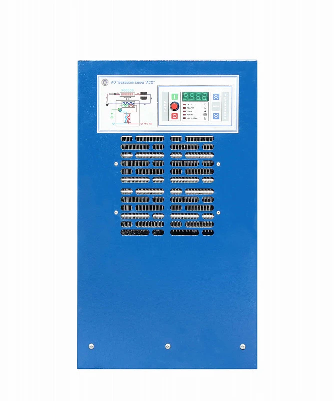 Контроль за работой осушителя воздуха осуществляется электронным блоком управления. Блок управления имеет четырехразрядный светодиодный дисплей, четыре кнопки управления («СЕТЬ», «ВВОД», «ВВЕРХ», «ВНИЗ») и пять контрольных индикаторов («СЕТЬ», «АВАРИЯ», «СЛИВ», «РЕЖИМ», «НАСТРОЙКА»). Блок управления осуществляет свою работу в трёх режимах: